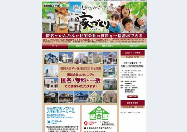 新サイトは、印刷会社・広告代理店がインターネットサービスを提供する組織、クラウドマネージメント協会が全国で展開する、地元工務店資料請求サイト「住宅情報館」のひとつ。同協会に所属する同社が、福岡県久留米市版のサイトの運営・管理を行う。