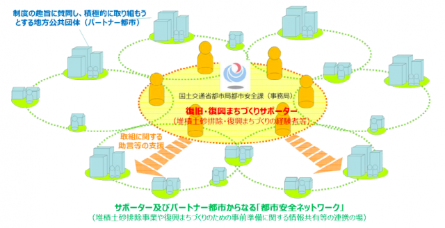 国土交通省は3月24日、「まちなかに堆積した土砂の排除」及び「復興まちづくりのための事前準備」についてノウハウを伝授できる地方公共団体の職員・OBを「復旧・復興まちづくりサポーター」として登録し、地方公共団体を支援する「復旧・復興まちづくりサポーター制度」を創設すると発表した。