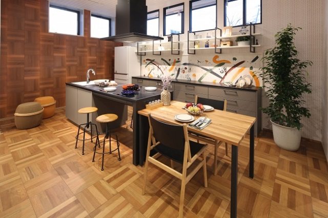 メイン展示の「LDK空間・IoT展示」コーナーでは、リビング・ダイニング・キッチンだけでなく、コミュニケーションや趣味の空間としての機能も考えた大人の空間を提案。IoT展示では、スマートフォン等による照明や空調、セキュリティなどの一括コントロールを実感・体感できる。
