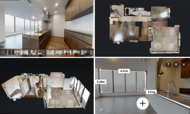 グループ内では、今年2月からModern Standard(東京都港区)が運営する高級賃貸サイト「モダンスタンダード」で実装を開始。Matterport(マターポート)社提供の3Dスキャンカメラで空間データを収集モデリング化し、立体的な高解像度画像で物件内を閲覧できる「インサイトビュー」をはじめ、「フロアプランビュー」や「ドールハウスビュー」、物件に行かずとも採寸できる「測定モード」といった様々な視点で物件を閲覧できるようになっている。