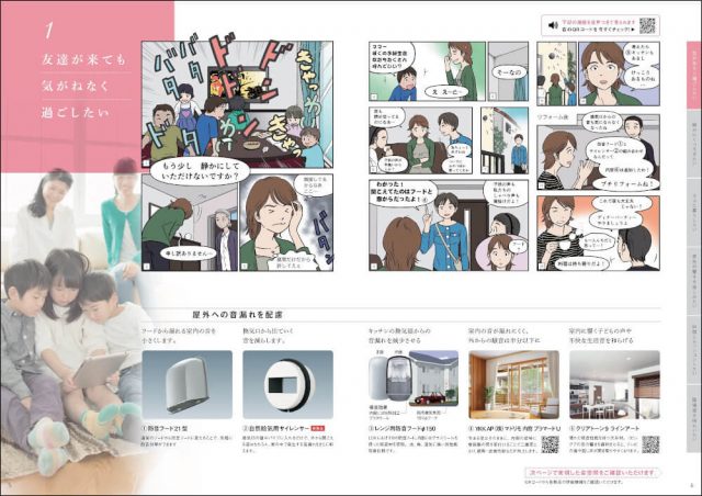 同パンフレットは、音に関する悩みとそれを解決する製品を紹介する「お悩み解決編」、理想の音響空間とそれを実現する製品を紹介する「あこがれ追求編」の2部構成とし、それぞれ3つずつ、計6つのプランを掲載。各事例を気軽に読めて、悩みやこだわりがイメージしやすいマンガ形式で紹介することで、音環境を整える重要性をわかりやすく訴求している。また、各プランで使用する製品やそれら製品を使って実現した理想の音響空間を掲載することで、具体的なイメージをふくらませやすい内容とした。