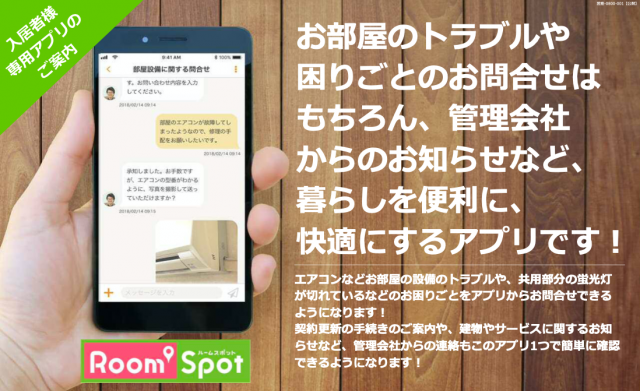 ポラスグループで『Room’Spot(ルームスポット)』ブランドによる賃貸管理・仲介業務等を展開する中央ビル管理(埼玉県越谷市)は4月10日、入居者向けに開発した専用アプリ「Room’Spotアプリ」の運用を開始した。