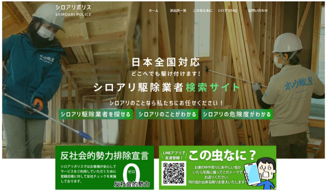 日本ボレイト(東京都千代田区)は4月22日、主に自然素材などを用いてシロアリ対策に取り組んでいる全国の施工業者を紹介するウェブサイト「シロアリポリス」を開設したと発表した。