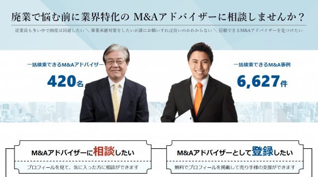 事業承継問題解決のためにM&Aを行う事例が近年増えているものの、専門会社の少なさなどからどこにも相談できず廃業する企業も多いことから同サイトを開設。地方からでも信頼できるM&A専門家を見つけ相談することができる。また、登録M&Aアドバイザーは、専門家掲載機能や案件一括検索機能など、専用システムを無料で利用可能。