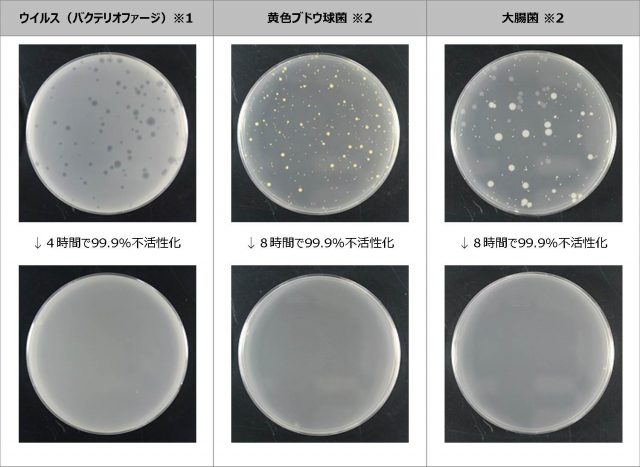 光触媒機能により、室内照明の光で菌やウイルスを短時間で不活性化する合成樹脂エマルションペイント。塗装面にノロウイルスが付着した場合は4時間後、各種菌類は8時間後に不活性化したとの効果を第三者機関で実証済みとする。 3万8000円/16kg。