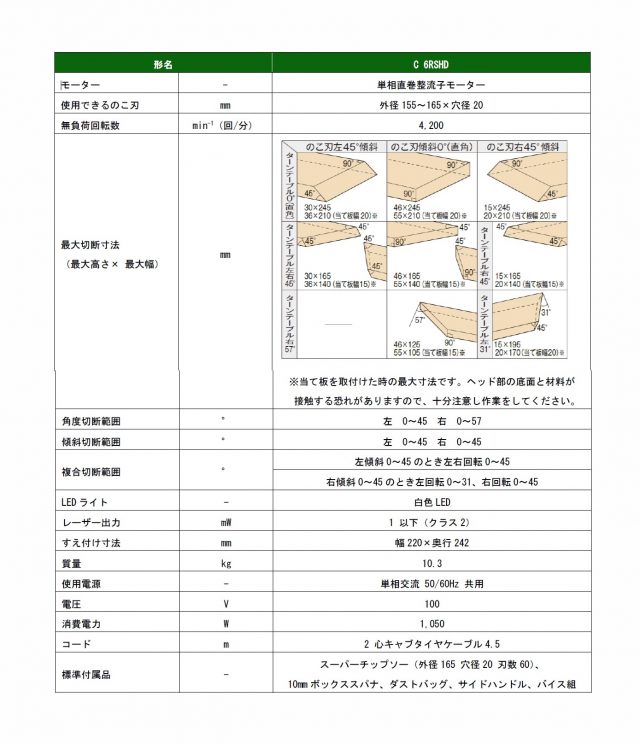 最大切断寸法は八寸(245mm)。五寸笠木の45度切断までの作業が可能なため、ほとんどの内装材の切断・加工が1台で済むという。10.3kgと軽量なため、現場への持ち運びにも適する。