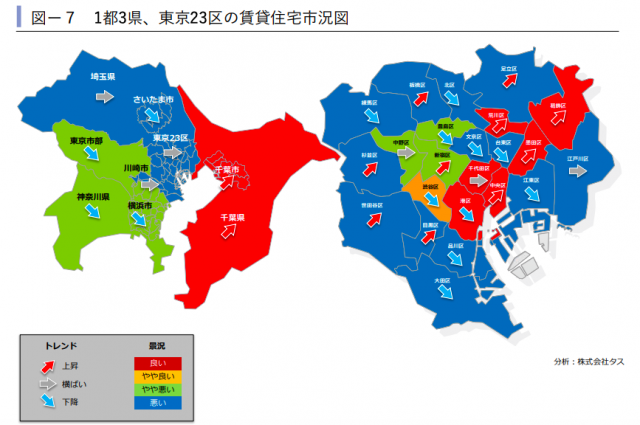不動産評価Webサイト「TAS-MAP」を運営するタス(東京都中央区)は4月28日、「賃貸住宅市場レポート 首都圏版・関西圏・中京圏・福岡県版2020年4月」を発表した。