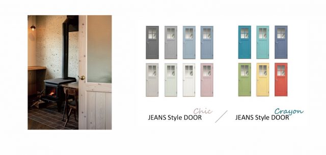 また、カラフルでかわいい印象の「ジーンズスタイル室内ドアシリーズ」のカラーバリエーションを一新した。グレイッシュなニュアンスカラーの「シック」と鮮やかな「クレヨン」を組み合わせて自分好みのコーディネートが可能。