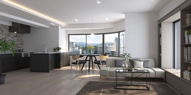 今回のショールームは、ラグジュアリー感と暮らしやすさを両立した。90m2。