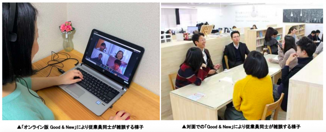 新型コロナの影響で在宅勤務に移行した後、対面での「Good & New」を中止したところ、社内アンケートで「部署内のコミュニケーションはあるが、部署を超えたコミュニケーションがなくなってしまい、会社としての一体感を感じられなくなるのでは」と危惧する声が寄せられたため、ビデオ会議サービス「Zoom(ズーム)」を活用したオンライン版を実施。Zoomの小部屋割り当てができる「ブレイクアウトルーム機能」を用い、全参加者を5~6名のチームに振り分けて行っている。