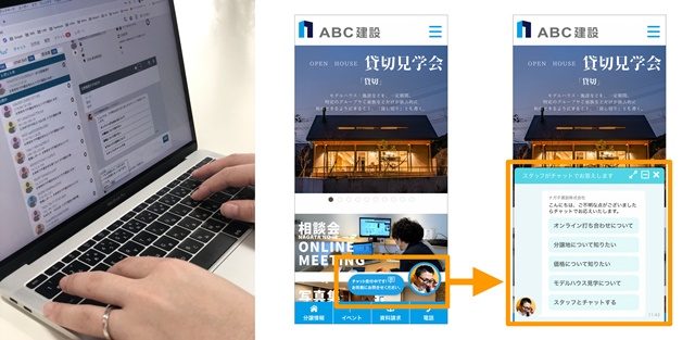 チャットはAIで自動応答してくれるほか、従業員が在宅や外出先など、どこにいても送受信することができる