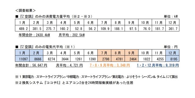ヒノキヤグループ(東京都千代田区)は、独自の全館空調システム「Z空調」の1年間の消費電力量を調査し、その結果を公表した。