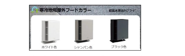 寒冷地用に高耐候なASA樹脂素材の屋外フードを開発。横吹き形状にしたことで、下方から風・雪が吹き込みにくく、すっきりとした見た目にもこだわった。温度交換効率92%。 設計価格15万5000円/セット。 ニュースリリースはこちら