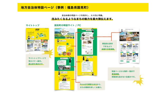 あきやカンパニー(東京都渋谷区)とYADOKARI(神奈川県横浜市)が共同運営する「空き家ゲートウェイ」は、新たなサービスとして地方自治体向けのPRプランをリリースした。6月から提供を開始しており、すでに新サービスの第1弾として福島県国見町の特設ページを公開している。