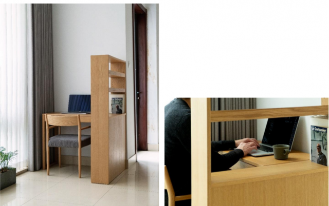 ドロワーやシェルフを組み合わせてテレワーク空間を作ることができる