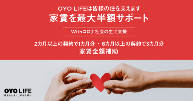 家具家電つきアパートメントサービス 「OYO LIFE」を運営するOYO TECHNOLOGY&HOSPITALITY JAPAN(東京都千代田区)は、中長期的に住む顧客の家賃負担を軽減するため、6カ月以上の契約で3カ月分の家賃全額を補助する支援を現在提供している。それに加え6月24日から、2~6カ月間の契約で1カ月分の家賃全額補助を開始した。