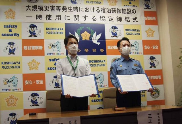 同協定は、大規模災害が発生した際、越谷警察署として長期間にわたる災害救助活動等が予想されることから、活動拠点を確保し、円滑な災害警備活動を行うことを目的として、越谷市にある同社施設であるセミナーガーデン研修所を一時使用するもの。 地域密着企業として、被災者や地域住民の救援・救護活動を行うために締結を行った。今回の派遣部隊の活動拠点に関する協定は越谷警察署としては初となる。