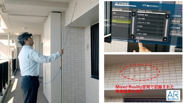 長谷工コーポレーション(東京都港区)とアウトソーシングテクノロジー(東京都千代田区)、日本マイクロソフト(東京都港区)は7月6日、マンションの外壁タイル打診検査にMR(複合現実)を用いた「AR 匠 RESIDENCE(エーアールタクミレジデンス)」を共同開発したと発表した。今後、建設・不動産業界のDX(デジタルトランスフォーメーション)による生産改革を共に進めていく方針。