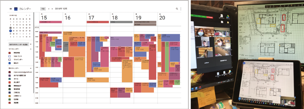 左/ Googleカレンダーで全社員のスケジュールを共有