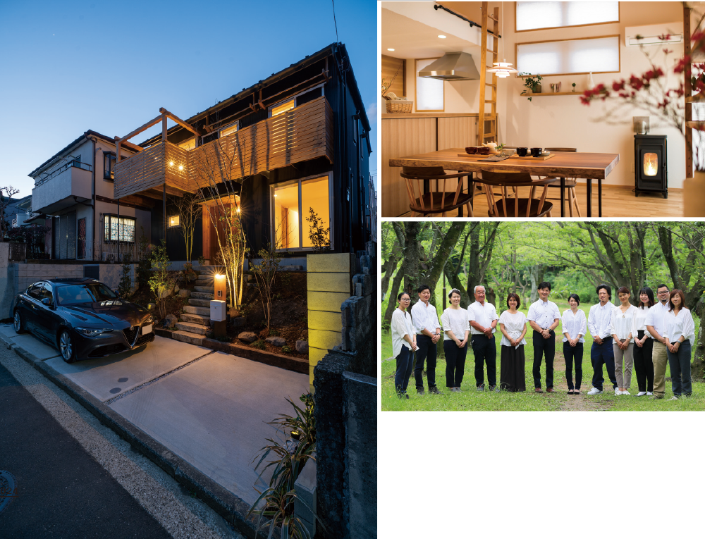左・右上/あすなろ建築工房の住宅の施工例。デザインや素材、暮らしやすさにこだわった家づくりを続けていくために、テック化で経営を強化する