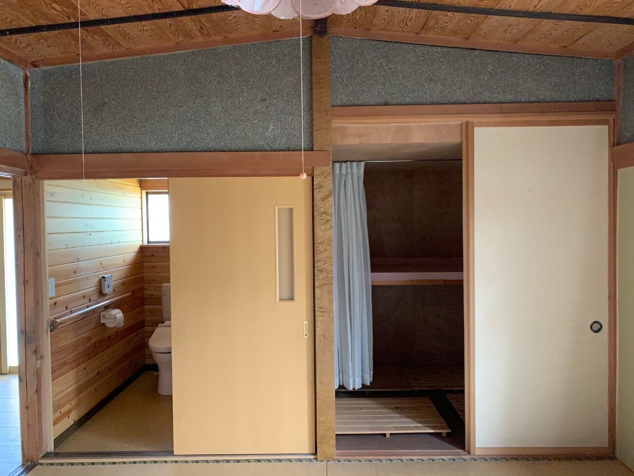 - 庭に面した場所に配置されたトイレ。比較的最近設けられたようだ。この部分は減築される