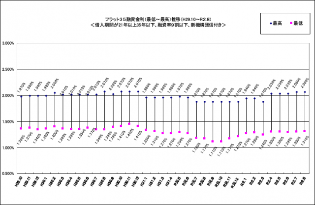 住宅金融支援機構(東京都文京区)が8月3日発表した、各金融機関の長期固定金利住宅ローン「フラット35」の8月分の金利は、主力の融資率9割以下・借入期間21年以上の場合で、年1.31~年2.06%だった。最低金利は2カ月連続の上昇となった。