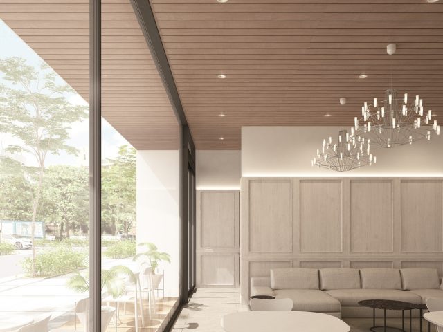大建工業(大阪市)は、室内天井と屋外軒下のデザインを同調させる提案として、内装用不燃羽目板「グラビオ羽目板」と外装用不燃軒天羽目板「ダイライト軒天羽目板」を8月21日に発売する。
