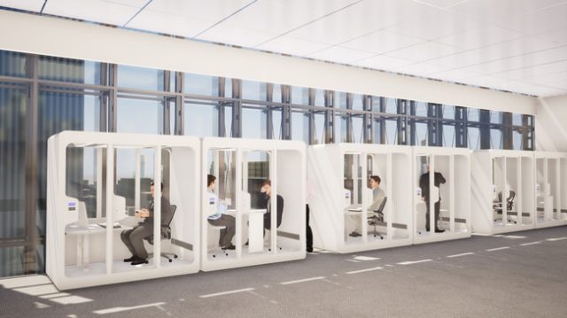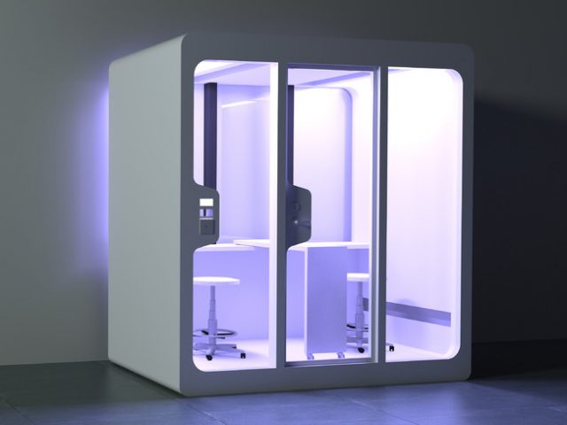 感染症対策の一つとして不特定多数の人が利用するシーンでの活用を想定。1~2名が利用でき、置くだけの可動式の個室となっている。今後、BB除菌システムに加えて自動消化装置付きのモデルもリリースする計画で、スプリンクラー設備が義務付けられているフロアーへも天井の工事無しで設置可能という。8月11日から六本木のショールームでの試作品見学会の受付を開始した。完全予約制で見学は1回に1社(最大3名)。見学会の詳細はこちら。