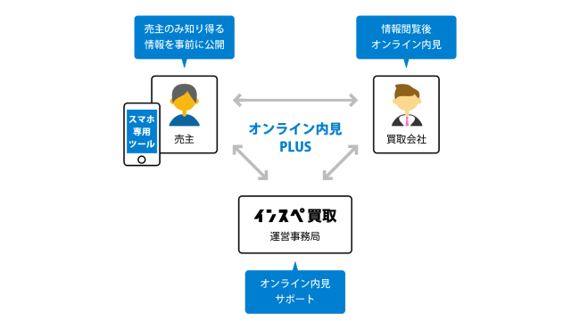 「オンライン内見 PLUS」は、不動産買い取りに特化した売り主向けのサービス。オンラインミーティングによって売り主と買い取り会社をつなぐ内見だけではなく、物件の詳しい状況や居住者のみが知り得る情報など、査定や買い取り判断に必要な情報を、専用ツールを用いて事前に公開することで、質の高いオンライン内見を実現する。