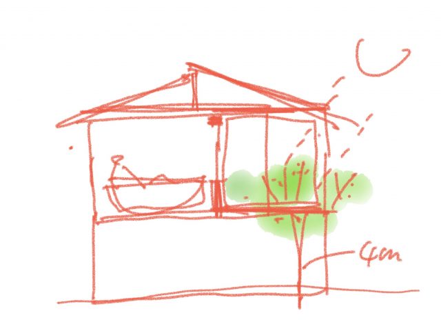 「いいですね!それなら庭に4mぐらいの背の高い木を植えましょう。ちょっと値段は高いと思いますが、お風呂から木の葉が揺れるのが見えると気持ちよさそうですよね!」