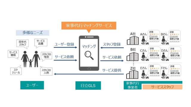 日立グローバルライフソリューションズ(東京都港区)は9月9日、複数の家事代行事業者を集め、一つのプラットフォーム上で幅広い選択肢からユーザーの希望に合うスタッフをマッチングする「家事代行マッチングサービス」の実証実験を開始した。