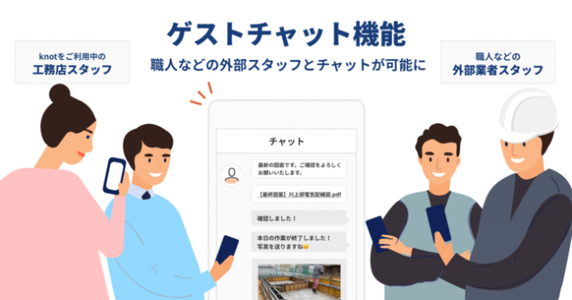 「大掛かりなシステムを入れずに職人と効率的にコミュニケーションをしたい」というknotを導入している工務店の声を元に開発したもので、低コストで外部業者とチャットやファイル共有ができ、現場のコミュニケーションがより円滑になるとしている。オプション機能とし、価格は月額9000円~(税別)。