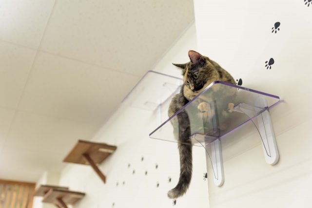 タカラ産業(大阪府東大阪市)は、壁付け設置するネコの休憩スペース「キャットステップPC4022」を開発。9月からクラウドファンディングサイト・Makuakeで発売した。