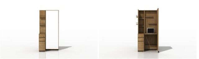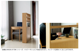書斎などの部屋がなく、リビングやダイニングでは家族がいて集中できないという人を対象に、寝室の姿見(ドレッサー)やベッドをデスクと組み合わせた商品を提案。日中有効活用できていない寝室空間を、「プライベートなオフィス(在宅勤務)空間」に変えるアイテムとして提供する。また、リビングで仕事をする人には、リラックスして作業できるダブルクッションソファや、ワゴンとシェルフを収納できるフレキシブルなワーキングローテーブルを提案している。仕事の空間づくりに悩む人のために、機能性とデザイン性を両立させた、新しい考え方のテレワーク家具としてデザインしたという。