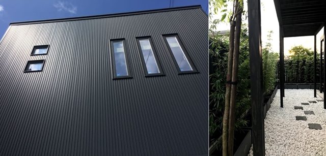 今回のスマートユニテ展示場は、上杉謙信を祀る上杉神社の北に位置するという立地に合わせた外観デザインも特徴。城下町として歴史ある街並みの中にマッチしたデザインにしたという。「城下町にふさわしい凛とした佇まいの黒の金属製サイディングの外壁を採用した」(同社、写真下)。