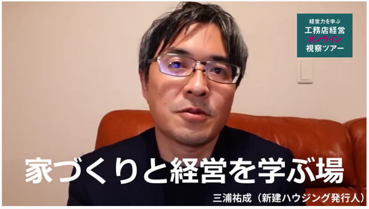 20~40代の工務店若手経営者/事業承継予定者限定のオンライン工務店視察ツアーを企画しました。コロナ禍でも安心して学び、意見交換ができるよう、Zoomを使って5社の工務店の取り組みを学びます(交通費がかからないのもメリット)。参加者による議論や新建ハウジングによる解説・総括も(発行人・三浦祐成)。クローズな場だからこそ話せるリアルな話や数字は、「倒産しない経営」を目指す若手経営者にとって大きな糧となります。視察と会員サロンを組み合わせたような学びと仲間づくりの場。ぜひご参加ください。