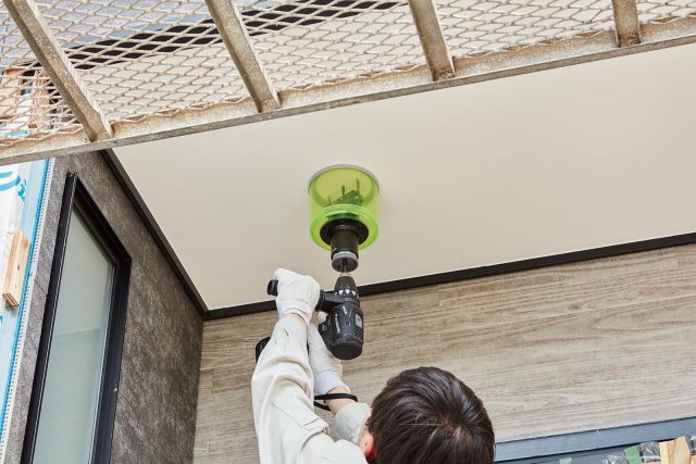 パナソニック ライフソリューションズ社(大阪府門真市)は11月、ドリルドライバーに接続して天井などの穴あけ加工に使える工具「ユニバーサルホルソー50-110」を発売する。