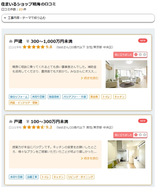 これにより、木耐協組合員のうち「リフォーム評価ナビ」に登録している事業者については、会員情報ページに口コミ情報へのリンクが貼られ、消費者による口コミが閲覧しやすくなる。