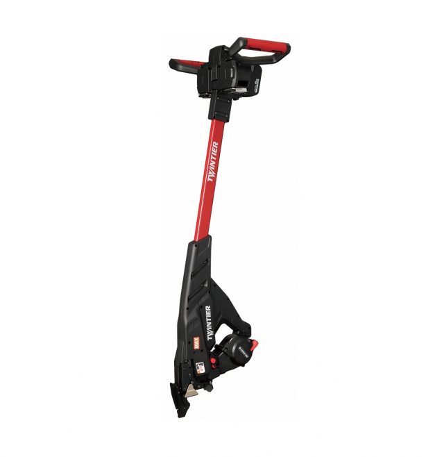 マックス(東京都中央区)は10月12日、立ち姿勢のまま、歩きながらコンクリート構造物の床面鉄筋結束作業が行える「TWINTIER(ツインタイア)RB-400T-E」を発売した。