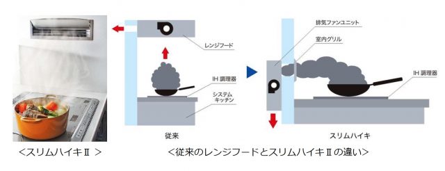 木造・RC造住宅を手がけるサンオリエント(岡山市)は、調理時の湯気・油煙を壁面から吸い込むタイプのIH調理機専用横型キッチン換気扇「スリムハイキⅡ」の提案・販売・設置を本格的に始めた。
