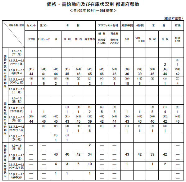 なお、同調査の対象となる土木工事での使用を想定した主要建設資材について、新型コロナウイルスによる影響と見られる需要動向変化は確認されなかった。