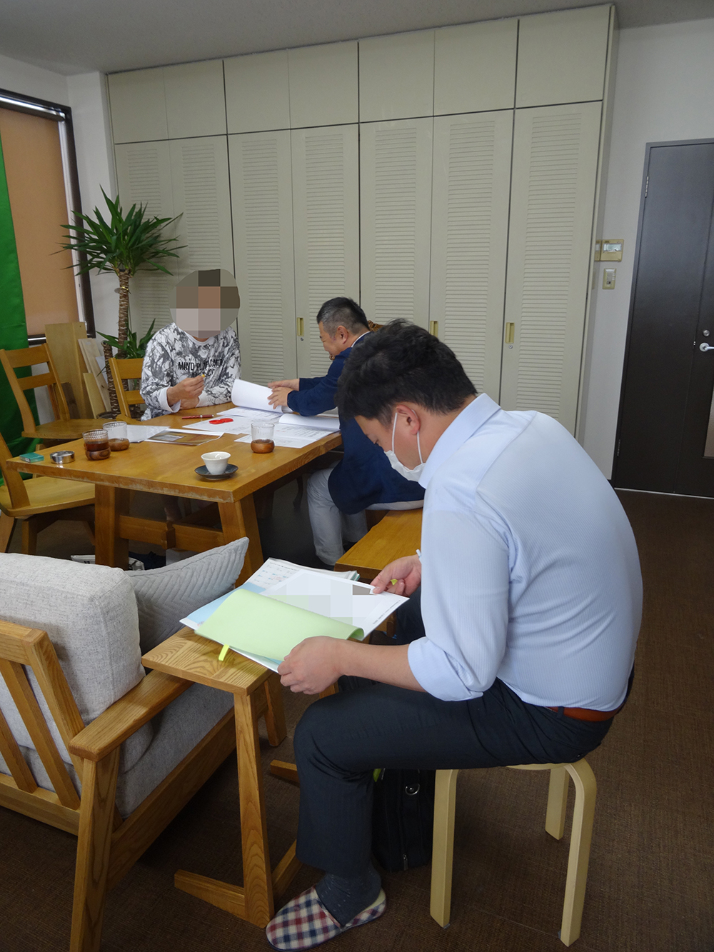 - 請負契約を進める横で銀行の担当者が準備をしている。ダブルヘッダーで契約