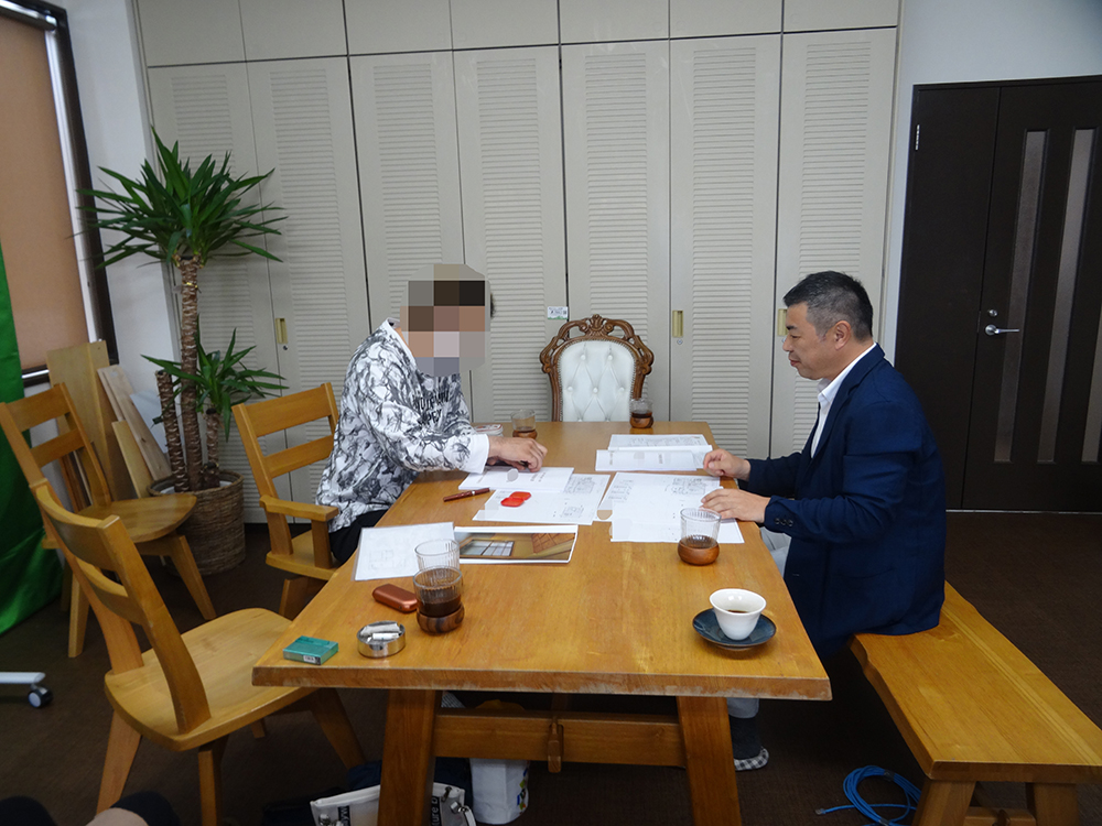 - 設計内容と見積りの説明を受けるAさん夫妻