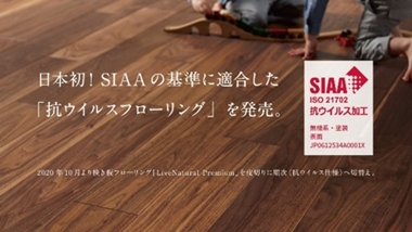 実証実験の裏付けをもとに、同社では10月1日に発売した抗菌製品技術協議会(SIAA)認定の天然木フローリング「Live Natural Premium<抗ウイルス仕様>」をはじめとして、抗ウイルス仕様の製品の商品化、拡販に力を入れる。Live Natural Premiumは現在、4つのシリーズを展開しており、既にすべてのシリーズを抗ウイルス仕様に切り替えている。