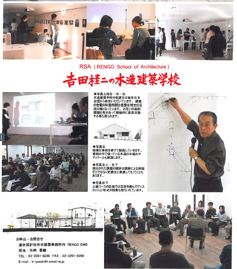 連合設計社市谷建築事務所内のrengoDMSでは、今年4月から新たにスタートする2012年度「吉田桂二の木造建築学校」の受講生を募集している。