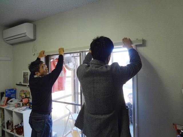 送付した断熱ブラインドは窓枠の外に取り付けるだけなので、一般的な道具を使って居住者が自ら作業できる。脇に生じる隙間を梱包材で埋めるなど、小さな工夫でさらに性能を高めることも可能。将来、仮設住宅を出る際にも取り外して持ち運べる。
