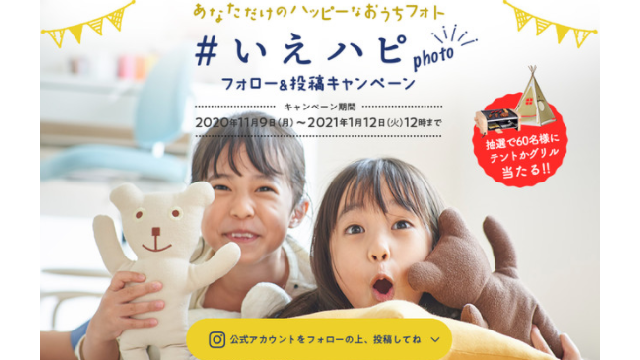 パナソニックホームズ(大阪府豊中市)は11月9日、ニューノーマルの暮らしを“おうち遊び”で楽しむ写真をInstagramで募集する、「#いえハピ」フォロー&投稿キャンペーンを開始した。応募期間は同日~2021年1月12日。