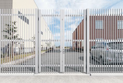 新製品は、セキュリティに配慮した高さ2500mm・3000mmの「ハイタイプ」を設定。門扉に幅2000mm・3000mm・4000mmの「大開口タイプ」をそろえ、両開きで有効開口幅最大8000mmまで対応する。