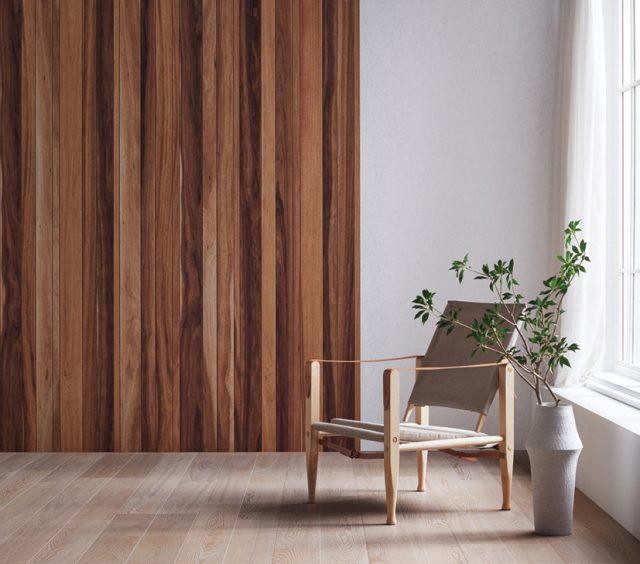 朝日ウッドテック(大阪市)は、木質素材の壁・天井材ブランド「the wall」の突き板シリーズに、新樹種として「アカシア」「スモークユーカリ」を追加した。あわせて同シリーズの表面塗装のツヤ、溝ピッチ・デザインを変更した。