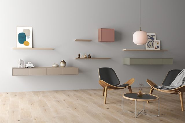 サンワカンパニー(大阪市)は、幅を1mm単位でオーダーできる一枚板調の壁付け棚「ピッタナ」を発売した。
